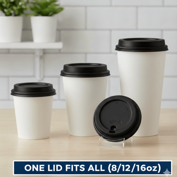 80mm Flat Coffee Cup Lid Black – 1000pcs